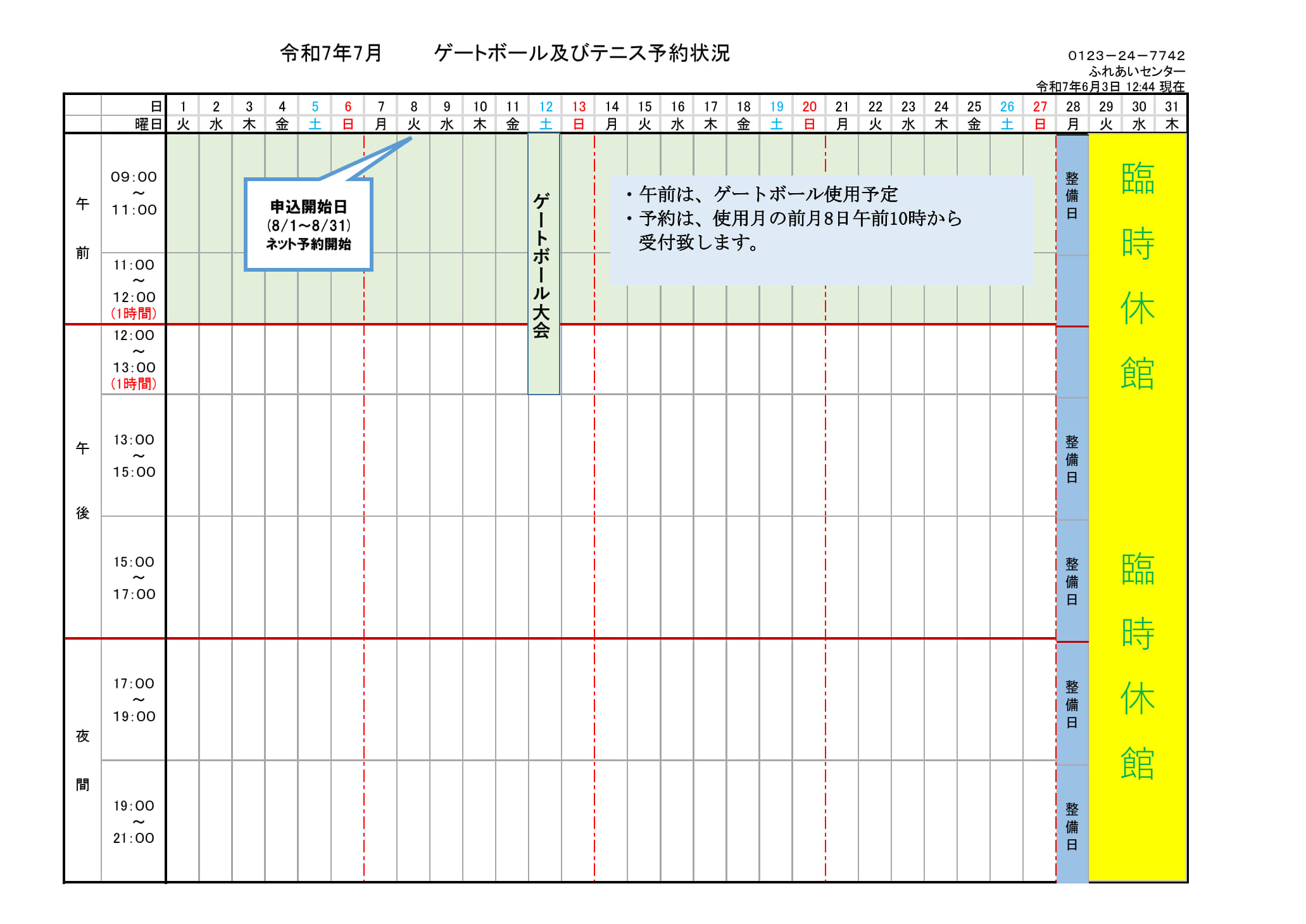 ふれあいセンター予約状況